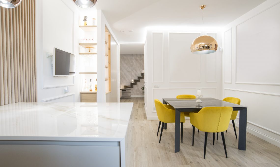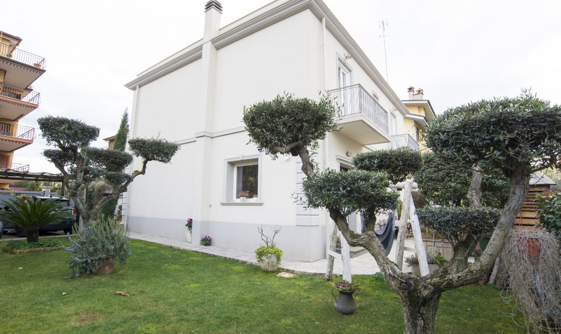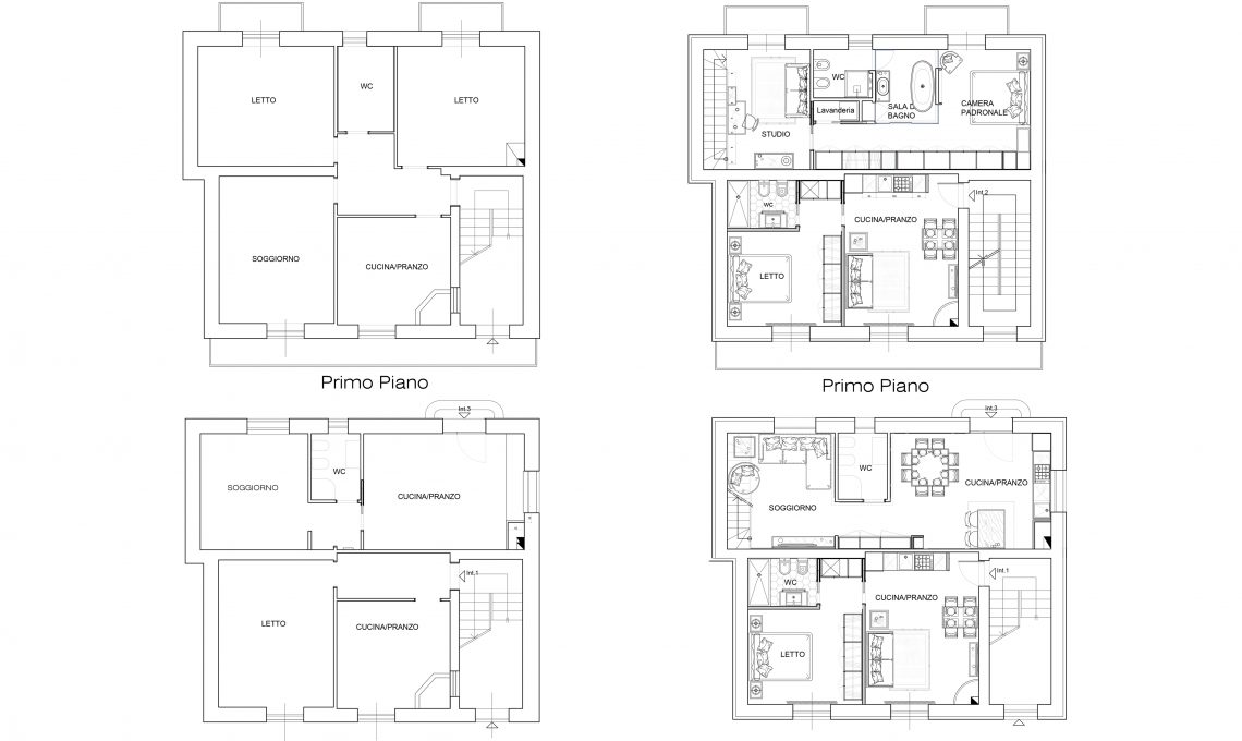 In questo progetto per la ristrutturazione di una villa situata a Mentana, provincia di Roma, il team di progettazione è stato chiamato a modificare l'impianto originario della villa, che comprendeva due appartamenti separati, uno al piano terra e uno al piano primo, per creare un unico appartamento più grande con accesso esclusivo al giardino e un piccolo appartamentino secondario con ingresso indipendente.