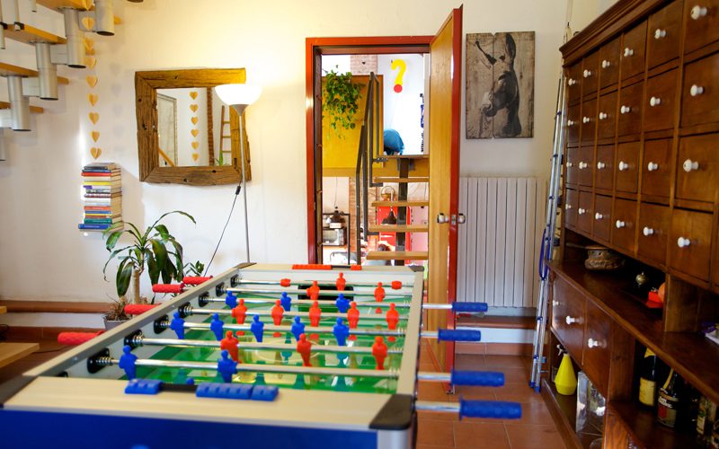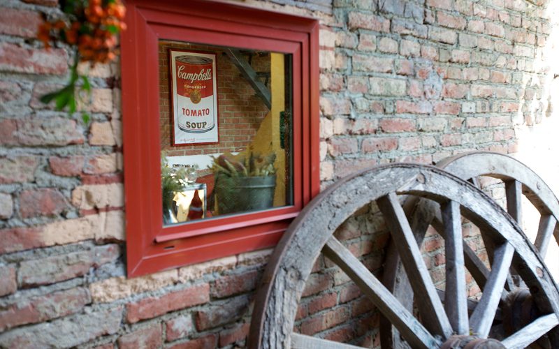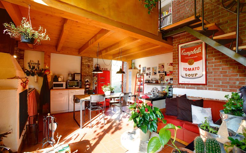 Si è voluto giocare tra lo stile fresco e pop degli arredi e l’involucro esistente chiaramente legato alla tradizione rurale, mantenuto appositamente invariato, esaltato anzi nella sua rusticità.