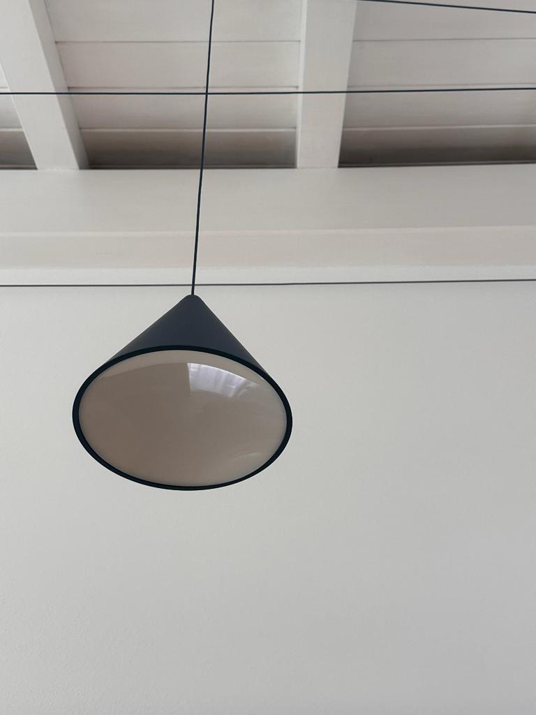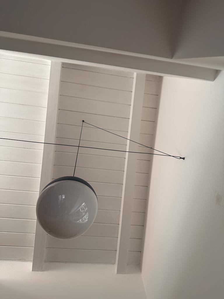String Light di Flos, ma con l'elemento sfera sempre in colore blu.