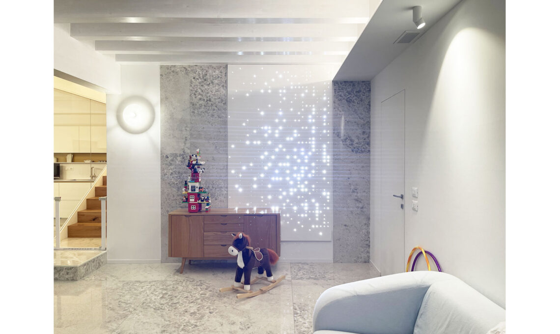 In parallelo al progetto di interni è stato sviluppato il progetto di illuminazione della casa.