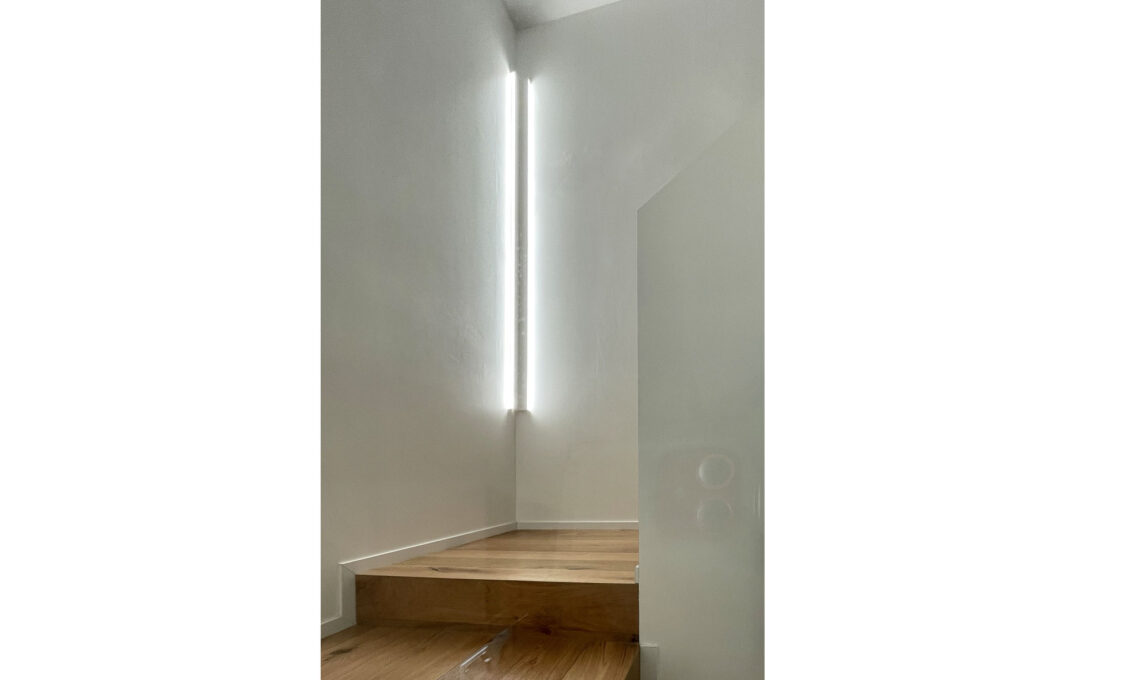 Grazie alle grandi vetrate anche le scale infatti diventato un tutt’uno con living, ed il piano terra risulta un unico grande spazio luminoso.