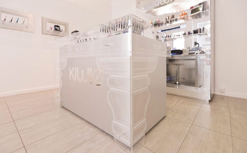 L’idea del progetto nasce dalla volontà di rappresentare cornici, arredi, oggetti in stile barocco, prezioso, con materiali fortemente contemporanei, il plexiglass inciso e l’acciaio.