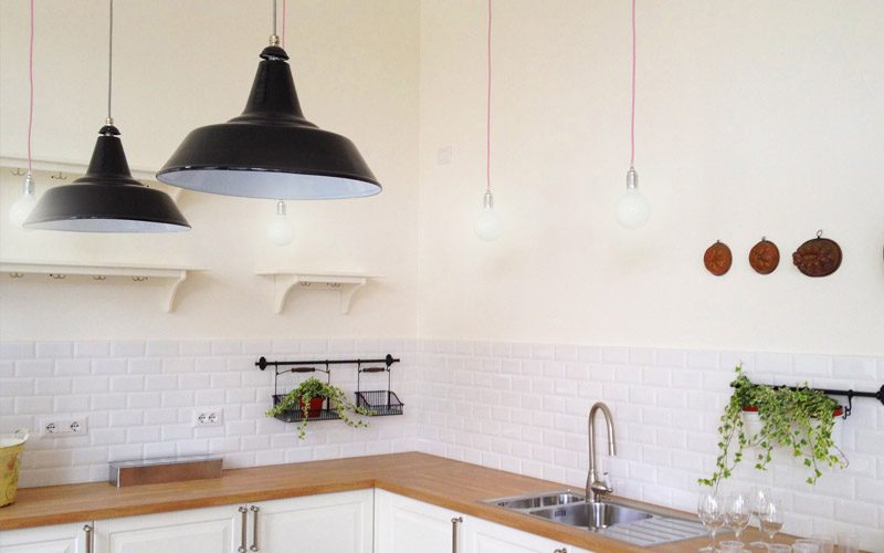 Progetto di una scuola di cucina. I toni sono volutamente country, con un tocco di familiarità, di calore tipicamente casalingo.