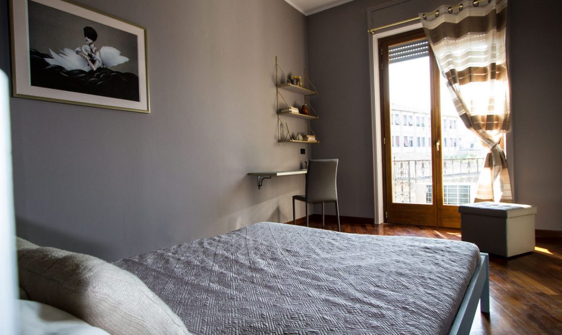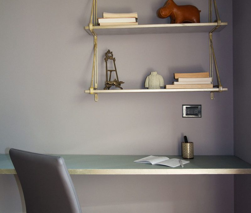- La zona di lavoro nella camera da letto è una mensola attaccata al muro, che occupa poco spazio.