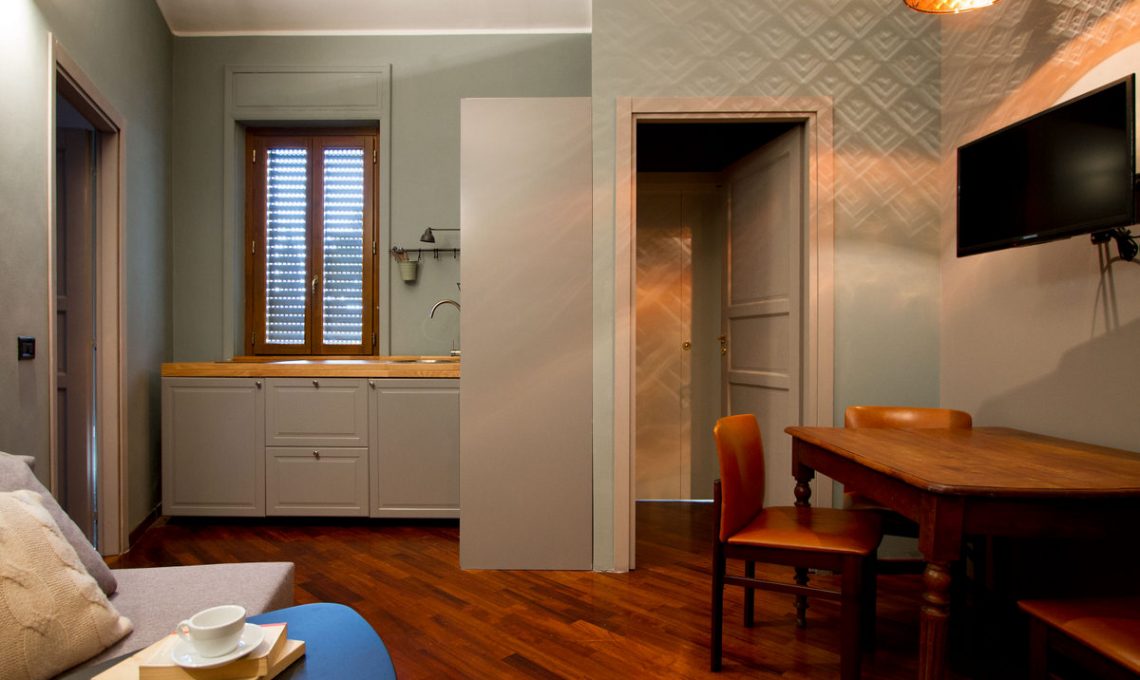 - Per ingrandire lo spazio del soggiorno/cucina abbiamo installato un grande specchio che ne ha aumentato la profondità.
