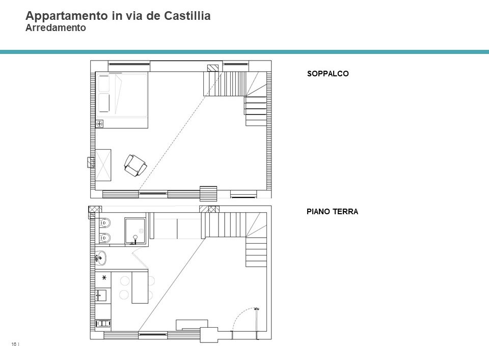 Questo appartamento si trova in una casa storica e per questo motivo non era possibile modificare le struttura originaria della pianta, le altezze e lo spazio del secondo piano.