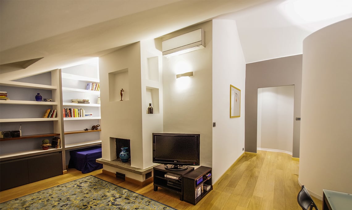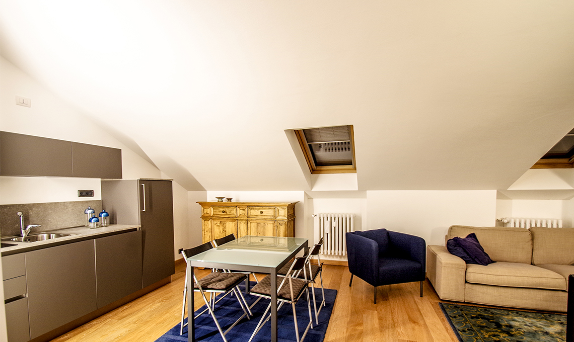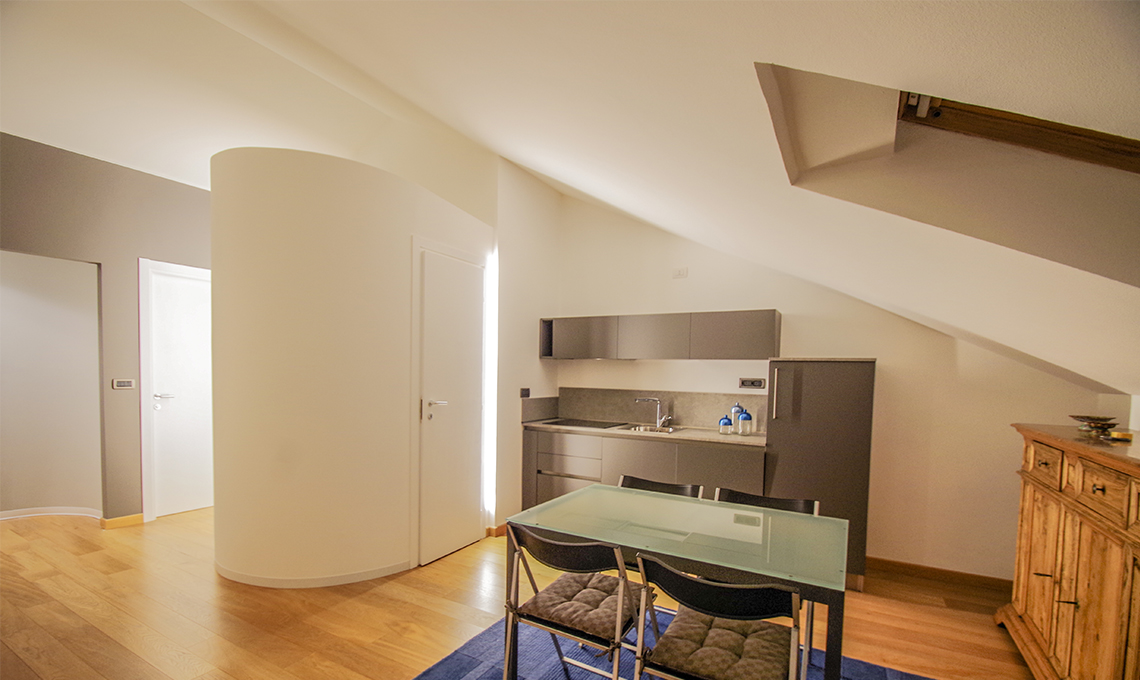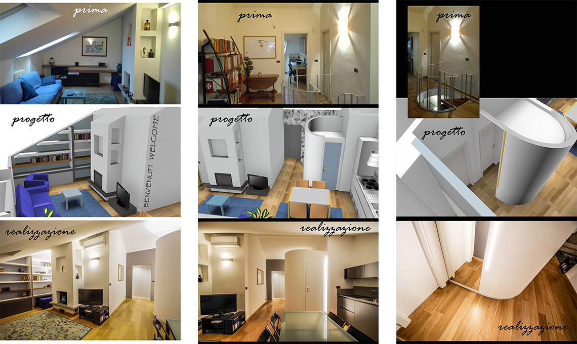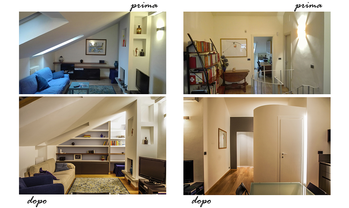 La richiesta di Rossella e Gianfranco, i padroni di casa, era quella di separare l'appartamento al piano di sotto dalla mansarda per dare a Lorenzo, loro figlio, un suo spazio esclusivo e, nel contempo pensare al restyling della mansarda.