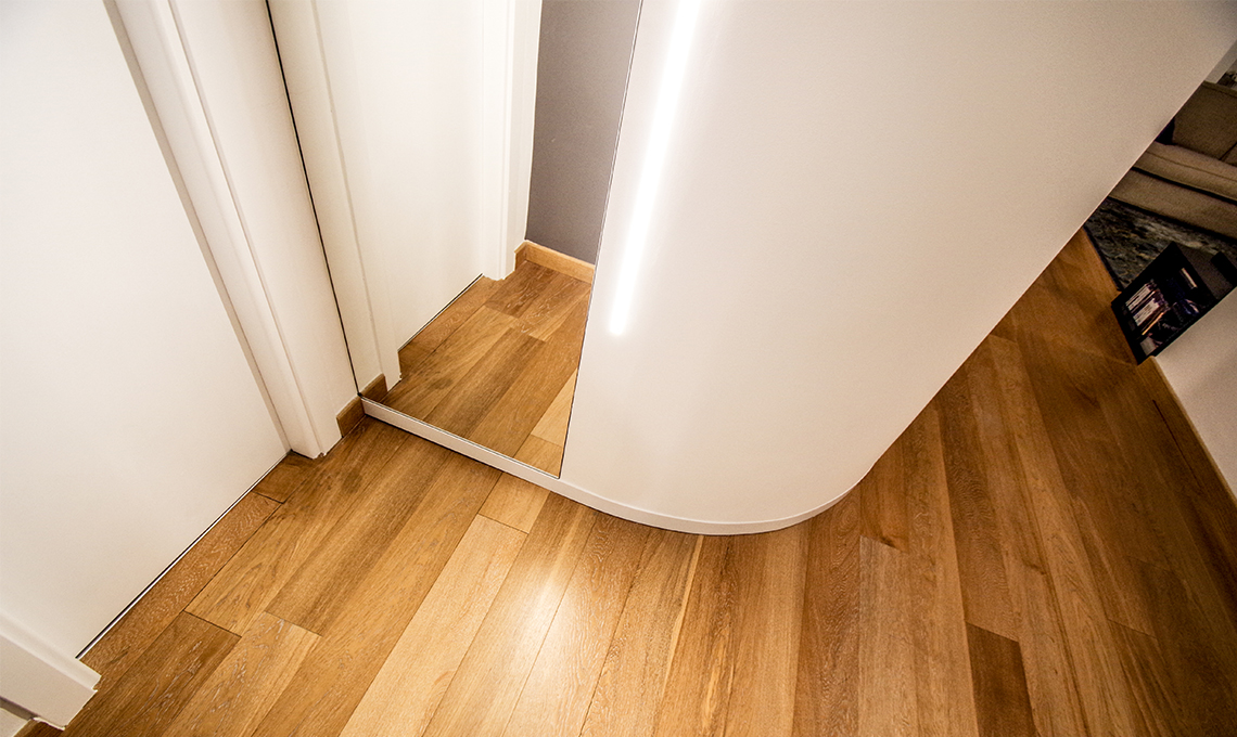 L’effetto finale è risultato di grande eleganza ed in sintonia con il parquet e con gli arredi preesistenti.