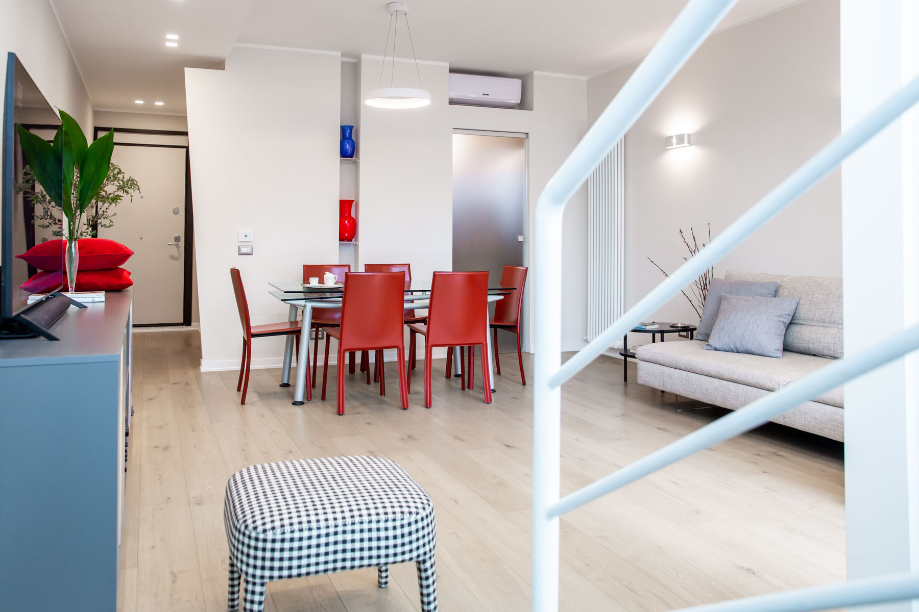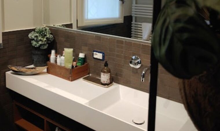 Legno ed acciaio per una doccia speciale per un bagno dal tono naturale