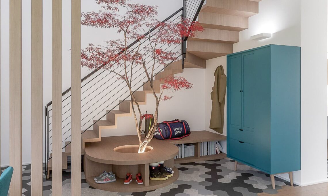 - un ingresso dal sapore orientale con un acero che svetta nella doppia altezza