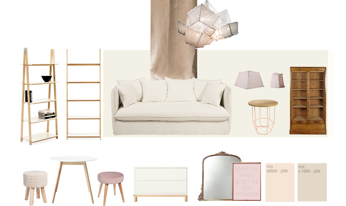 Quando si lavora, non è detto che per concentrarsi si debba stare in un luogo asettico: può capitare che si abbia bisogno di sentirsi anche coccolati per fare galoppare la propria fantasia, . E' il caso di Anna, giovane mamma con la necessità di avere un luogo in casa in cui svolgere la propria attività, avvolta da un'atmosfera soft nella quale potere ospitare anche il suo giovanissimo "assistente". La "morbidezza" del colore pastello della alta boiserie risulta perfetto per creare un tenue stacco con il bianco della base: entrambe le tonalità sono riprese dagli elementi di arredo, dando così un'uniformità sulla quale potere introdurre oggettistica e accessori senza far sembrare l'ambiente disordinato. L' utilizzo di un tessuto come il lino, sia per la copertura del divano che per i paralumi, è in grado di donare un senso generale di leggerezza, mentre alcuni pezzi di arredamento vintage - come le serrandina anni '30 e lo specchio della "nonna" - sono molto utili per scaldare l'ambiente. Libri e cataloghi, eccezionali pezzi di arredo, sono valorizzati da  tele monocromatiche, poster con scritte semplici e un arazzo in lino grezzo, come elemento di originalità.