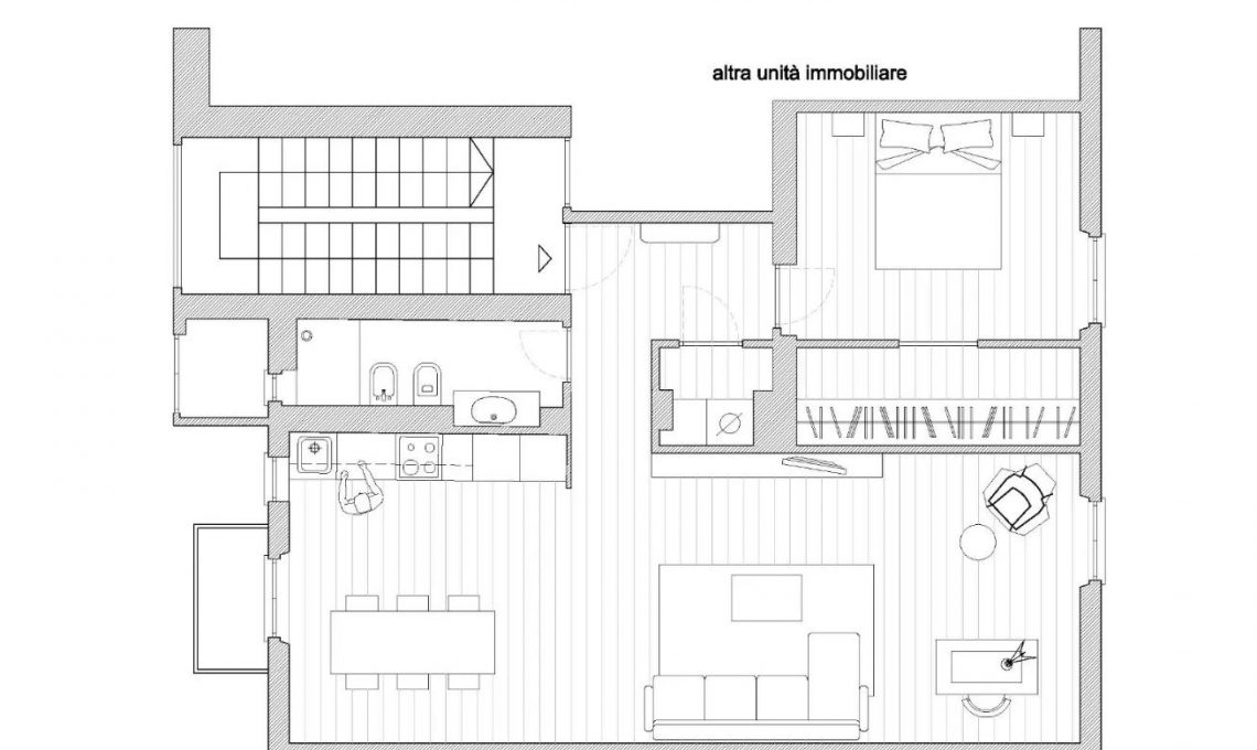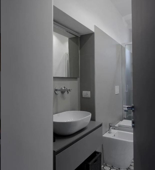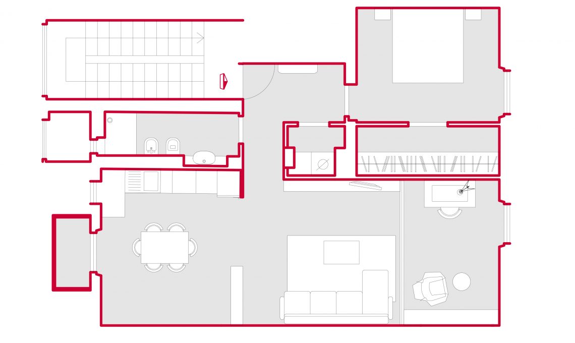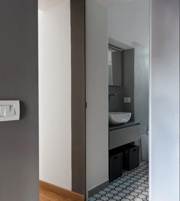 Ristrutturazione di un luminoso e spazioso bilocale in via Jacopo dal Verme, in zona Isola. Il progetto stravolge la distribuzione interna di un appartamento di un palazzo dei primi del 900. Il progetto nasce per soddisfare le esigenze di un giovane architetto urbanista. E' stata prestata grande attenzione alle finiture e ai colori. Ogni ambiente viene caratterizzato da un colore predominante. L’ingresso, viene valorizzato da una pitturazione grigio scuro effetto “scatola” con porte rasomuro in tinta. Il grande open space della zona giorno, seppur completamente aperto, viene suddiviso grazie all’utilizzo dei colori in una zona cucina, una zona salotto ed una zona studio. Il bagno, caratterizzato dall’utilizzo di cementine a pavimento con effetto tappeto, la camera da letto con cabina armadio attigua, con porta di accesso in cristallo satinato.