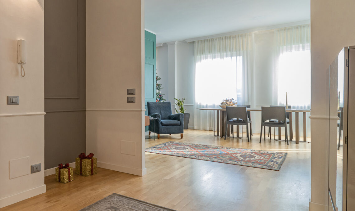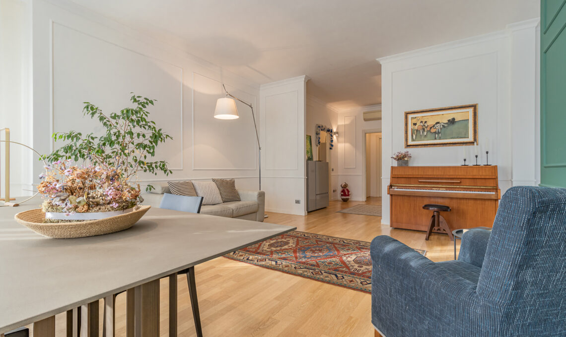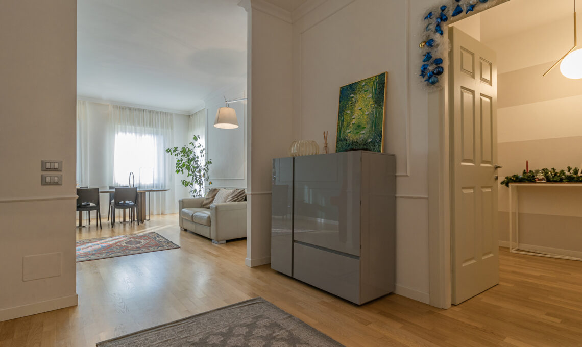 Il progetto presentato riguarda il restyling della zona giorno di un appartamento in centro città con uno stile classico contemporaneo.