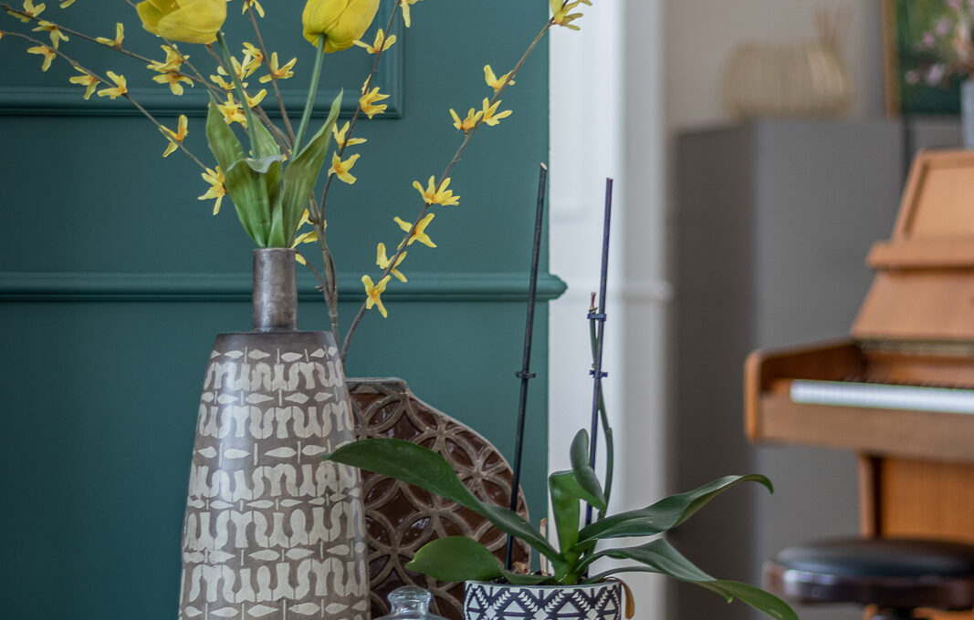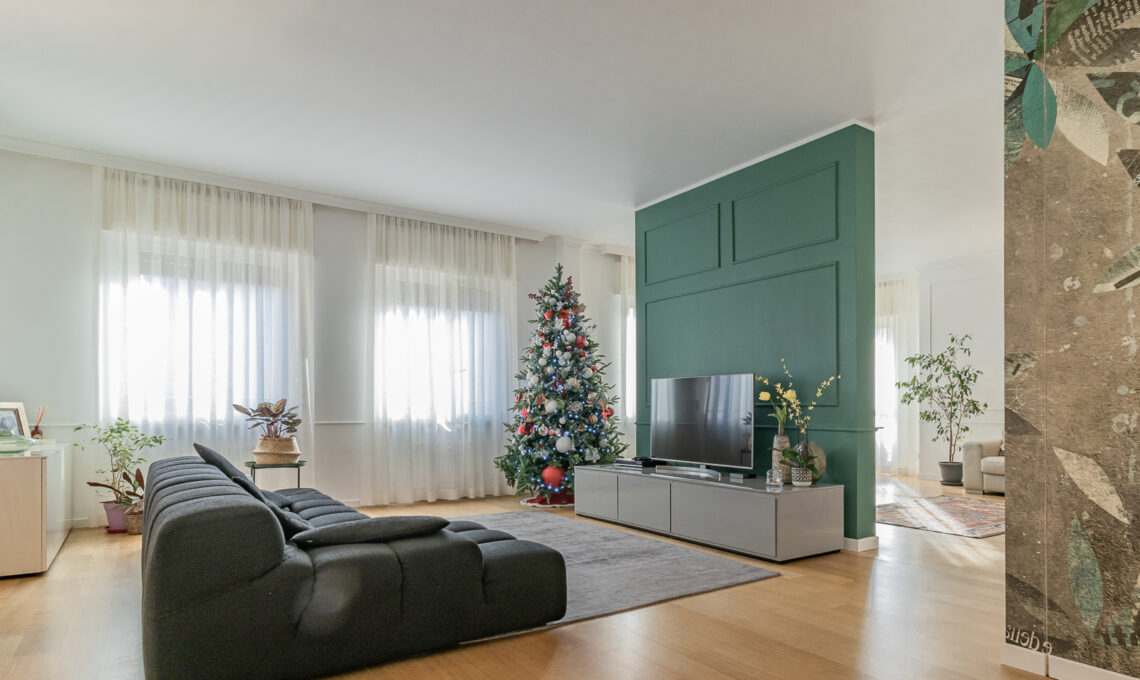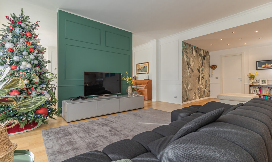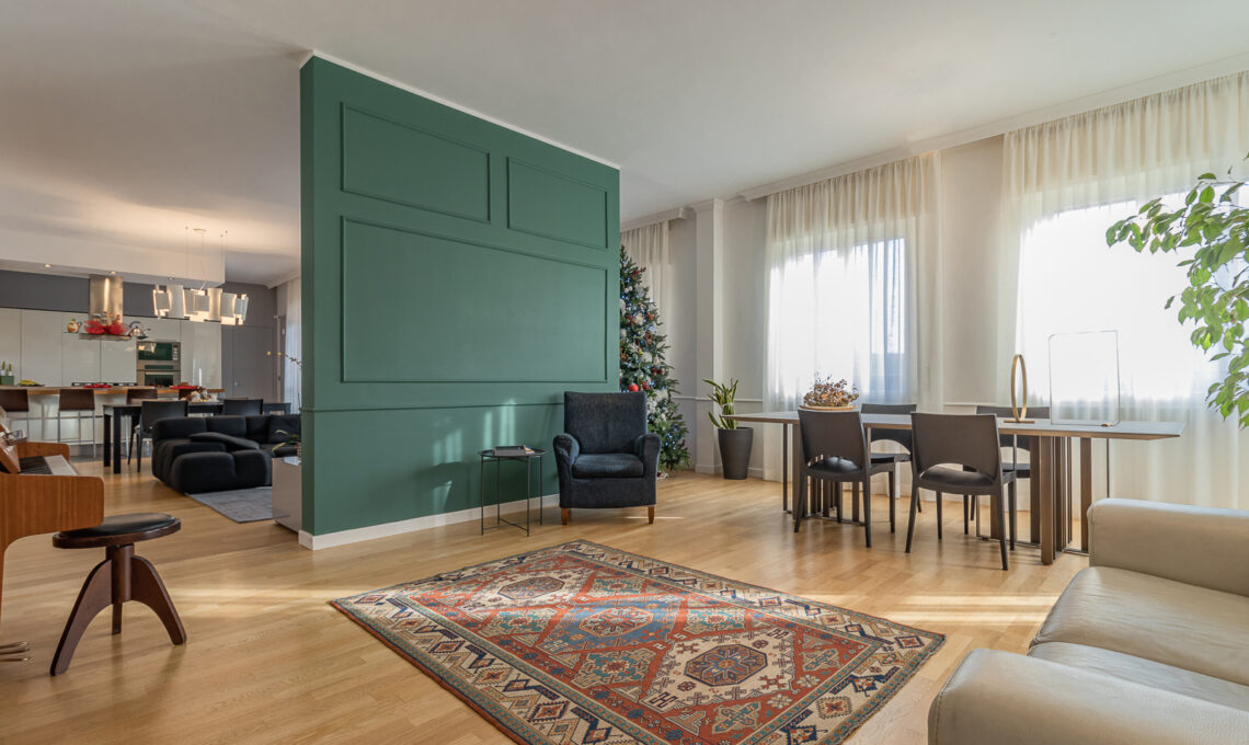 - il verde smeraldo con cui è stata tinteggiata la parete divisoria tra i due living.