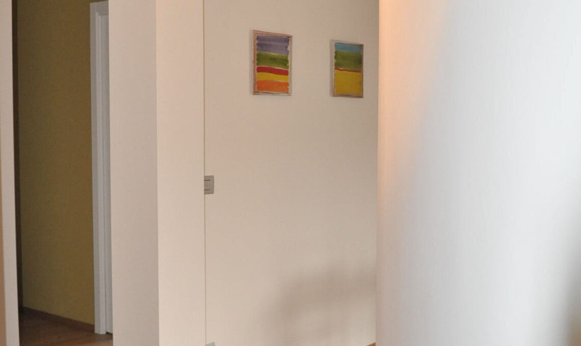 L’abitazione dall’ ingresso si dirama, da un lato verso la zona giorno e dall’altro lato verso la zona notte, rispetto alla distribuzione originaria è stata effettuata una inversione totale degli ambienti.