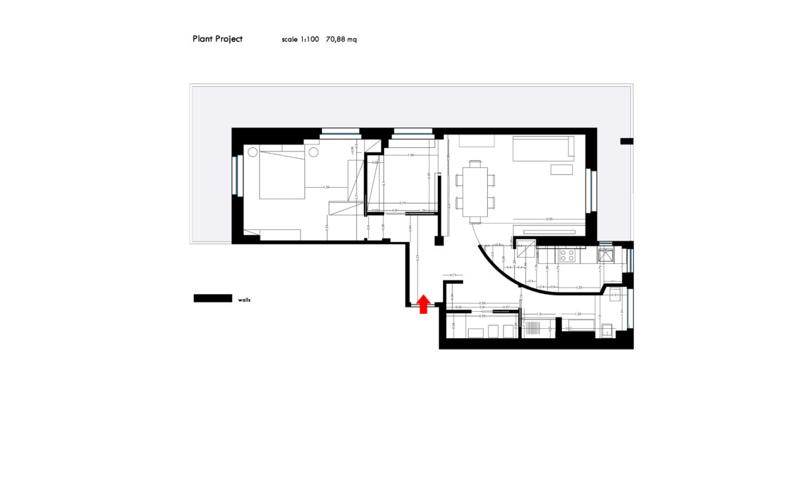 La nuova configurazione interna rende l’abitazione più funzionale, ottimizza gli spazi tenendo in considerazione delle esigenze di una giovane coppia.