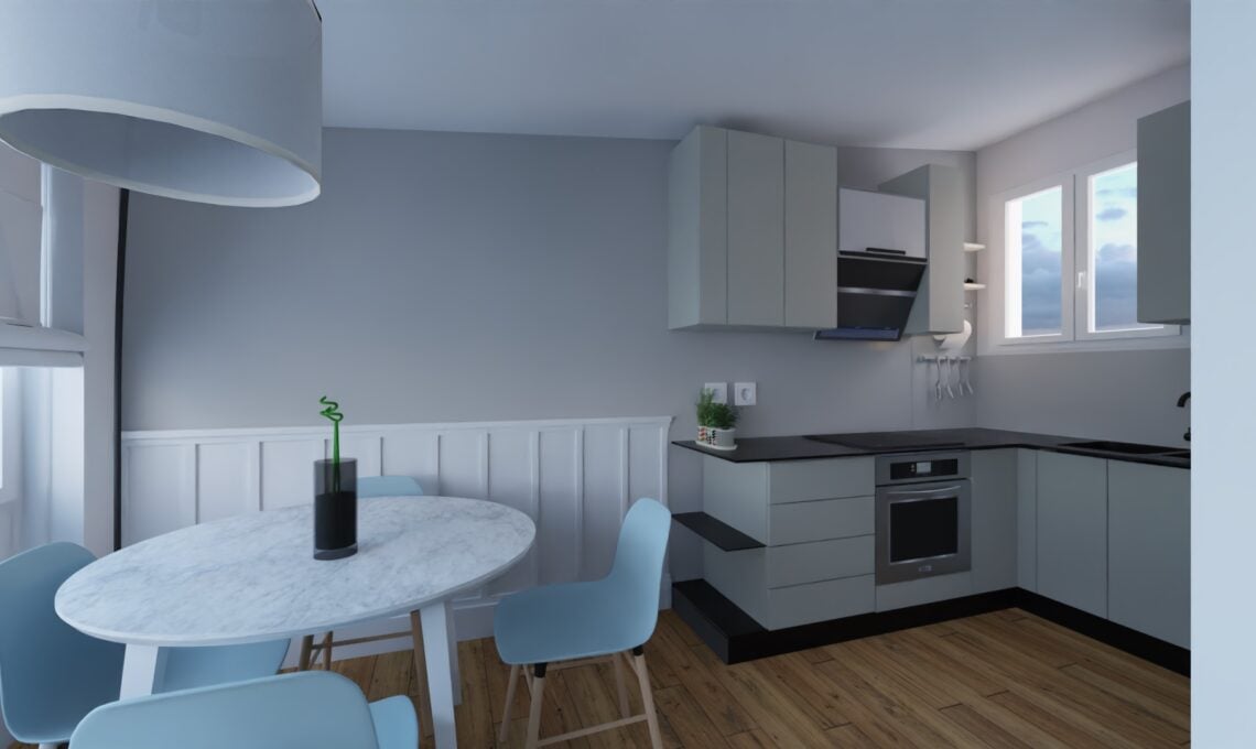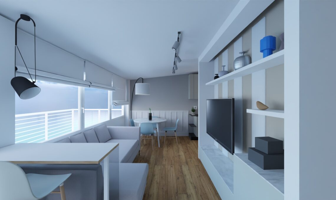 Sono stata contattata da una giovane coppia che per lavoro si sposta frequentemente ma che intendeva ristrutturare un piccolo appartamento (meno di 50mq netti) di famiglia in una località di mare del Lazio in cui rifugiarsi nei weekend e dove risiedere durante i non rari periodi di smart working. Quindi non una casa per vacanza ma per viverci, seppure non continuativamente, tutto l’anno.