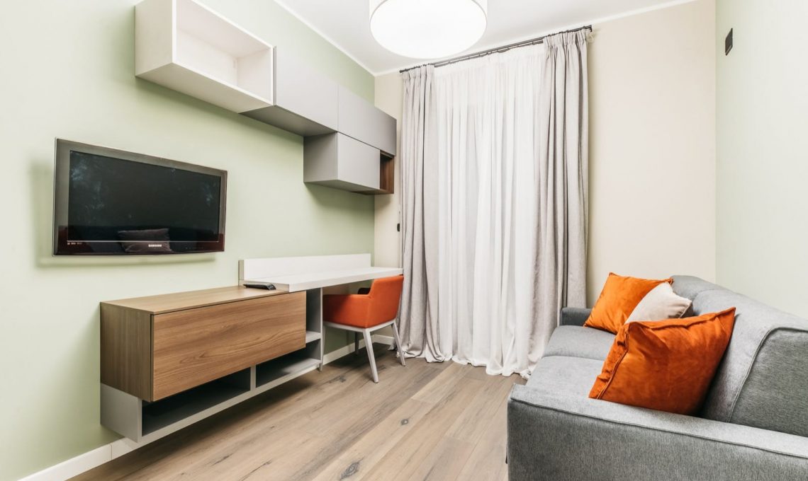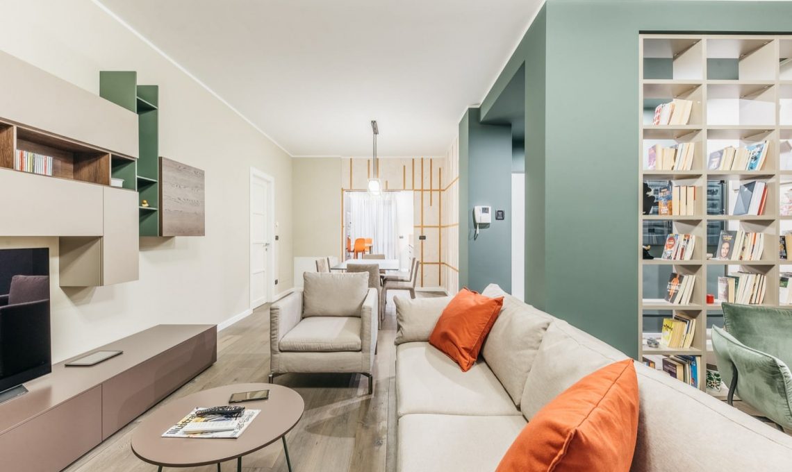L’appartamento era allo stato grezzo, mancava di tutte le scelte legate alle finiture, ai rivestimenti e all'organizzazione degli spazi. Ho eseguito una ricerca di stile per inquadrare quello che era il suo e come potevamo applicarlo all'interno dei suoi ambienti. Ho realizzato un moodboard in cui ho riportato i punti principali del progetto, ovvero la palette colori e la proposta di materiali per gli arredi. Da qui abbiamo definito uno stile assolutamente moderno, di carattere e molto deciso, proprio come lui. Finiture legno, colori neutri come tortora e grigio comunicano tra di loro in modo armonioso, mentre verde e arancione sono il fil rouge dell'appartamento.I lavori