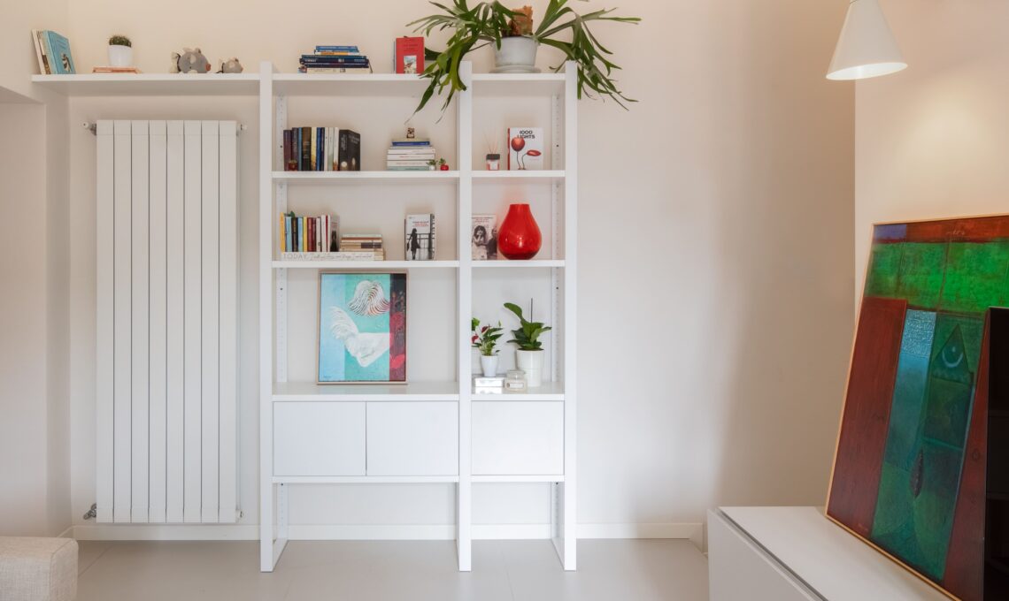 Altro intervento fondamentale per cambiare totalmente l’aspetto della casa è stato la scelta del colore delle pareti e degli arredi, un bianco luminoso e brillante, in grado di far entrare la luce e riflettersi per tutta la casa, i colpi di colore vengono dati dai dettagli di arredo e dal pavimento originale pieno di personalità.