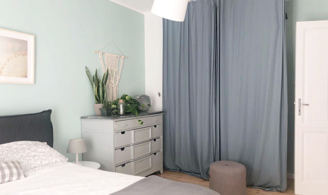 Dalle scale si procede verso il primo piano dove sono collocate le camere da letto e il bagno. Anche in queste camere, caratterizzate dalla presenza di parquet originario dell'epoca, ho deciso di lavorare su toni pastello e di circondarmi di elementi naturali, esattamente come per il piano terra. Quindi anche qui il colore verde, l'azzurro e il terra giocano insieme per creare atmosfere che rimandano all'aspetto della natura e alla sua carica di energia vitale.