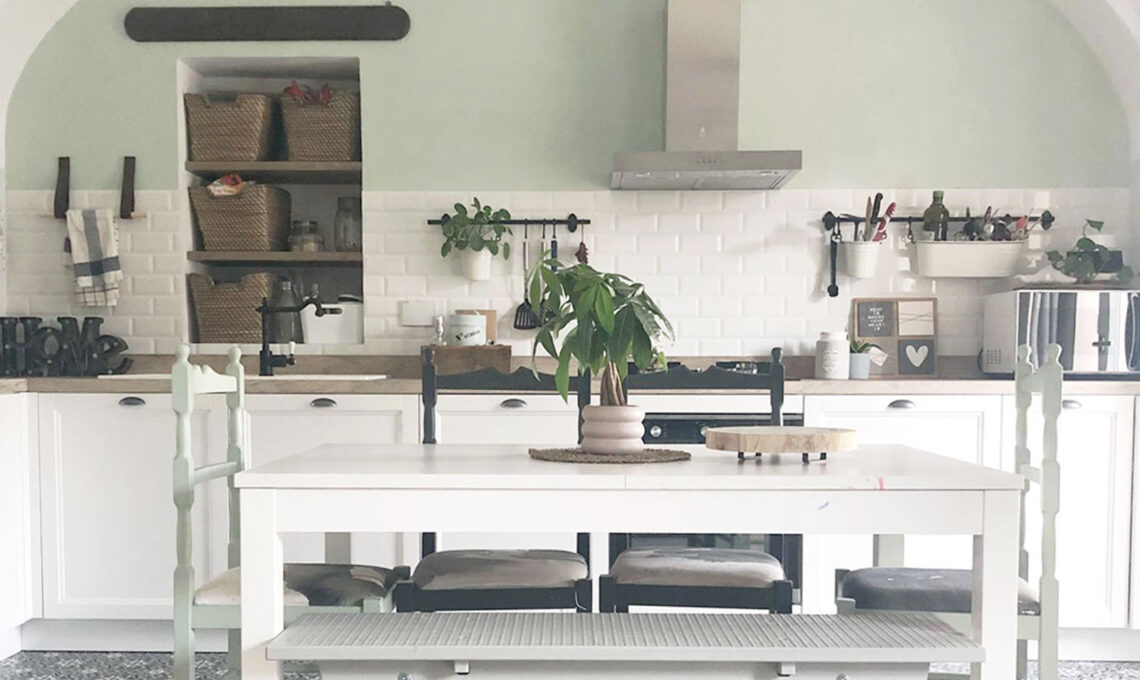 La craftroom è una piccola stanza che si apre direttamente sull'ingresso e gode di una buona luce grazie alle finestre presenti. L'open space che ospita cucina e salotto è ricco di elementi e dettagli dai colori caldi, come il legno, il tessile, i complementi artigianali e tutte quelle scelte che mi hanno permesso di ricreare un ambiente accogliente.
