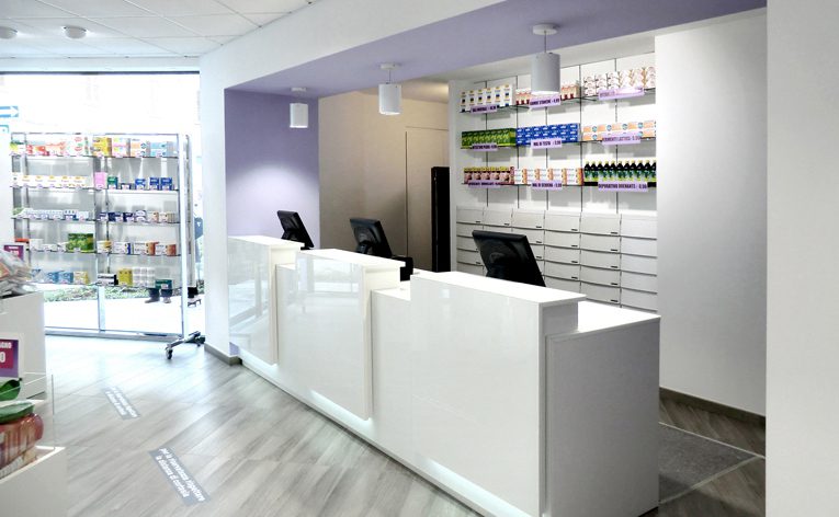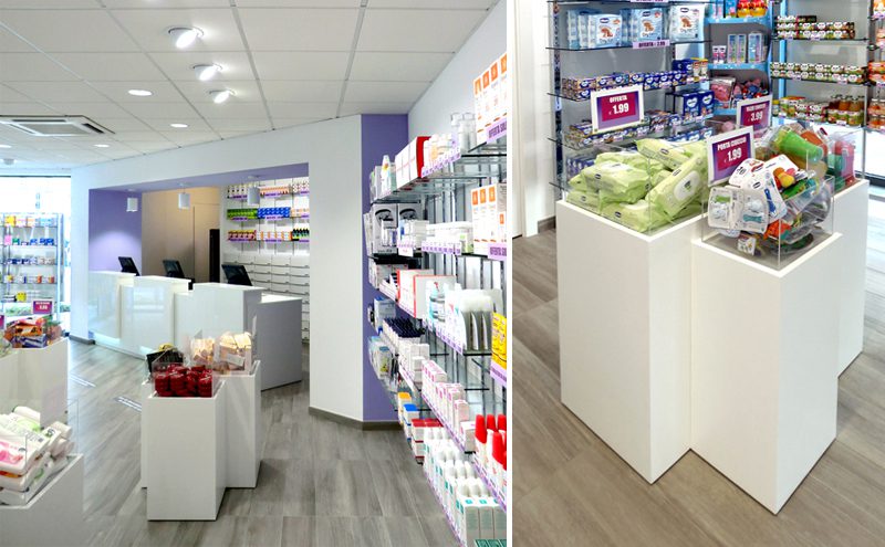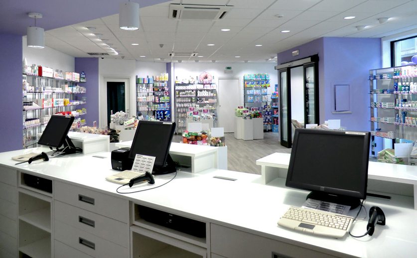 Progettazione degli interni di una farmacia.