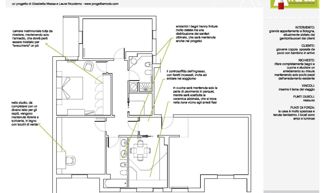 Il rifacimento dei due bagni e della cucina. La volontà di progettare interamente l'arredamento dell'appartamento che i genitori/suoceri hanno lasciato loro. Questo punto di partenza diventa una opportunità per una giovane coppia per un vero e proprio viaggio attravero il colore.