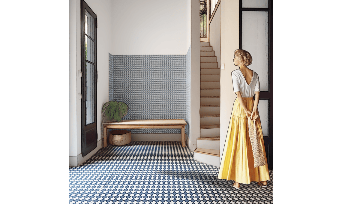 Nell'ingresso Nelle case indipendenti, o in quelle che hanno un vestibolo, può esserci l’esigenza di proteggere le pareti. Sono zone di servizio in cui si appoggiano molte cose, si entra con le borse della spesa, ci si cambia le scarpe… Proteggere le pareti può semplificare la pulizia senza rinunciare al decoro.In certe tradizioni, penso a quella spagnola o marocchina, abitualmente gli ingressi sono rivestiti in ceramica. Anche le panche e gli arredi fissi possono essere protetti e rifiniti con le piastrelle.Interessante perché queste soluzioni hanno tanto connotazioni pop quanto retrò o classiche al decoro o al colore del materiale che si adopera.