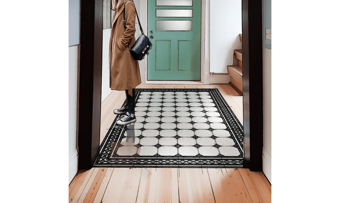 Come tappeto Una soluzione certamente incontrata nell’esperienza personale e che attinge dalla nostra cultura e storia è quella del tappeto in ceramica che si inserisce all’interno di un pavimento diverso.Un filtro, uno spazio sacrificale, che ci aiuta a gestire il rapporto con l’esterno (e la sporcizia)e a proteggere eventualmente un altro pavimento.Il tappeto è una questione di stile però: nelle mie immagini vi propongo uno stile colorato, pop o eclettico. Se utilizzo invece una grande lastra chiara in cui il decoro è affidato al tipo di materiale evocato dalla lastra stessa, allora sposto il mio stile verso qualcosa ancora di diverso che può diventare classico o nordico.