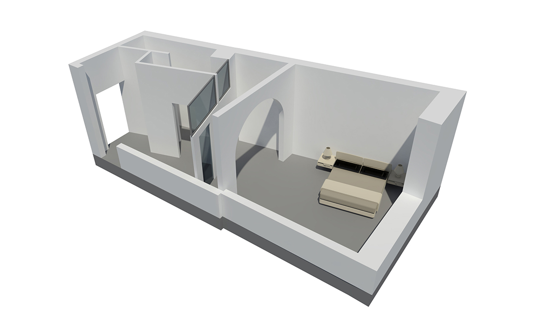 Prima dell'intervento, le arcate portanti della casa erano state in parte chiuse, impedendo ad aria e luce di circolare. Ora riportate a vista rendono più fruibile e luminosa anche la zona centrale della casa.
