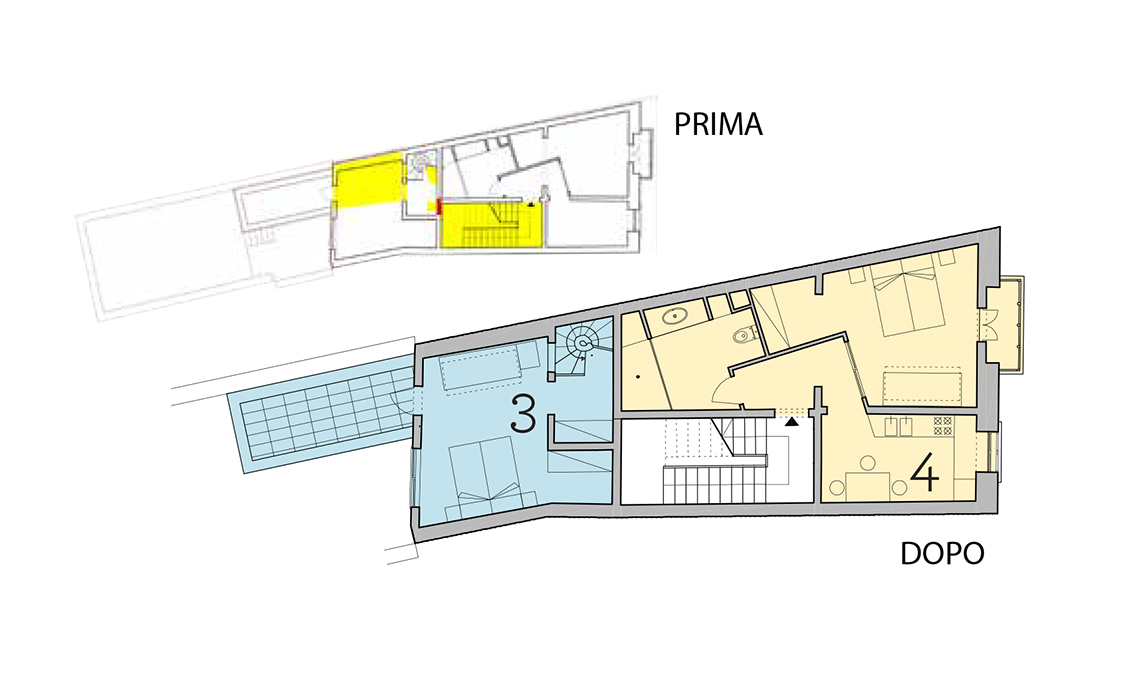 L'appartamento 4 (giallo), affacciato su