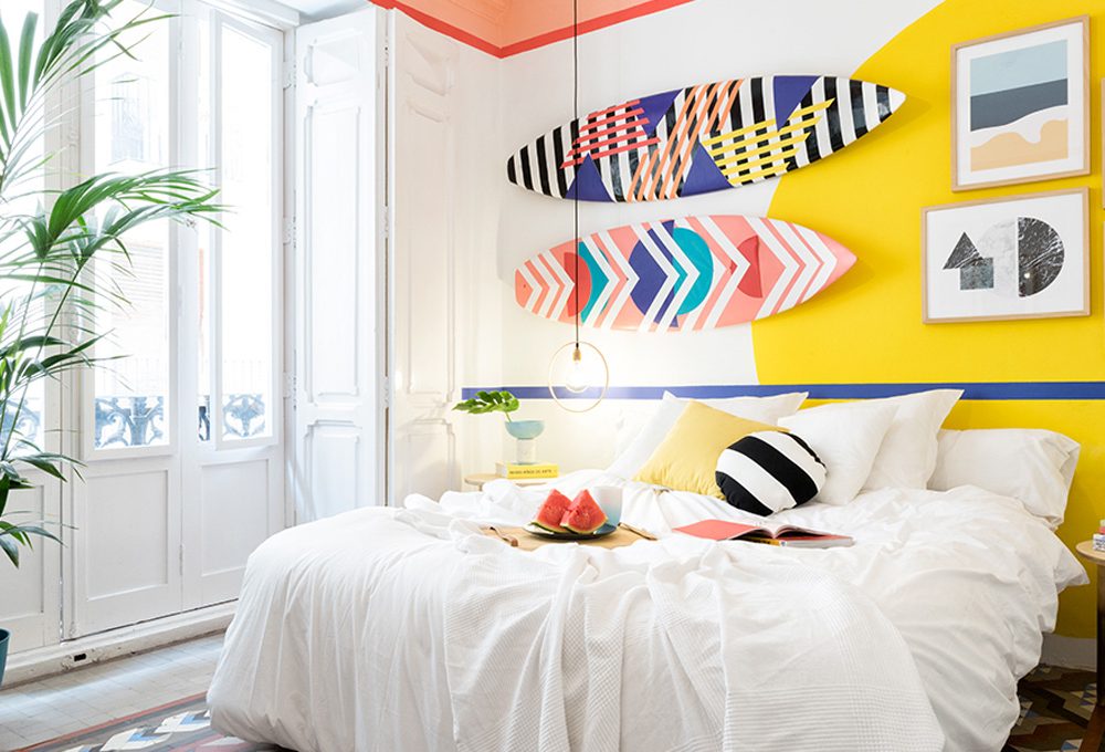 Anche la stanza da letto più anonima cambia faccia con una testata del letto protagonista. È di grande effetto una campitura di colore, ma per renderla più originale puoi rifinirla lungo i bordi con i washi tape. Altra soluzione minimale ma superdécor: 2-3 maxi cuscini d’arredo su cui appoggiare i guanciali con semplici federe bianche. Vai per mercatini? Anche una testata vintage sarà perfetta.