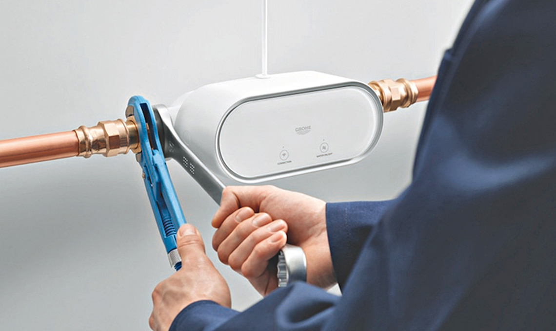 - Installato fra le tubazioni idriche principali, il sistema di sicurezza Grohe Sense Guard è in grado di rilevare le micro-perdite e interrompere automaticamente l’erogazione dell’acqua in caso di guasti alle tubature. È gestibile da remoto tramite la App Ondus di Grohe [Grohe].