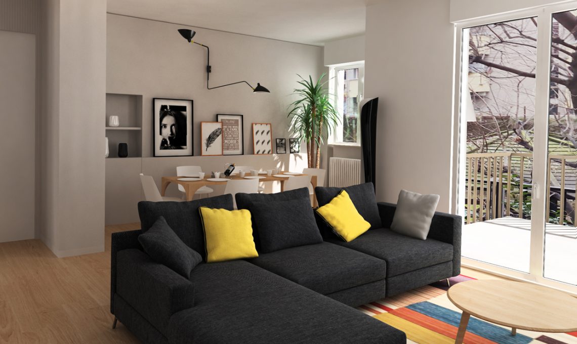 Tolta la libreria che separava le zone giorno, cucina e notte, il living è diventato un grande open space e in ingresso è stato creato un armadio in cartongesso per i cappotti.