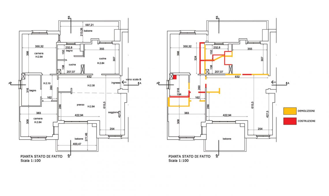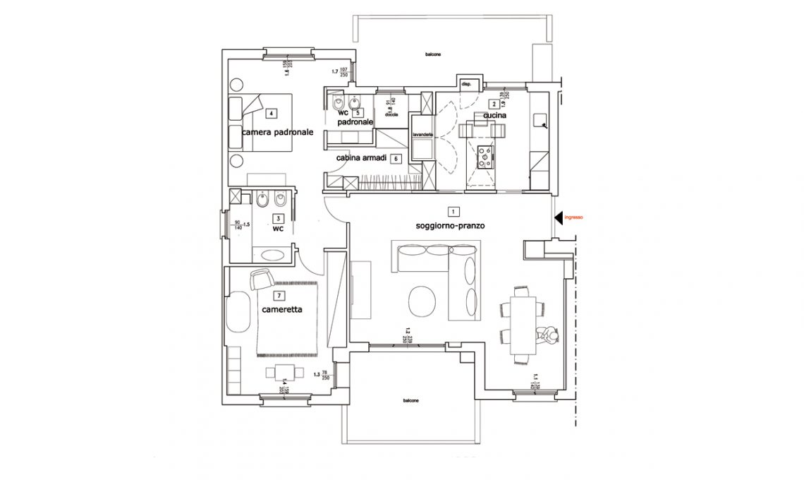 Prima: una cucina fin troppo grande e una lavanderia poco sfruttata. Dopo: la stanza dei genitori è una suite, quella del figlio è più ampia e la zona giorno diventa open