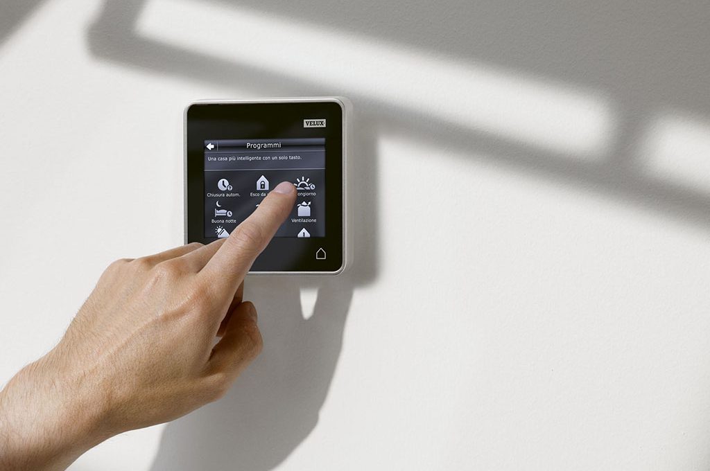 E per facilitare la gestione da remoto di finestre da tetto e tapparelle solari Integra, c’è il Control Pad a parete, sempre Velux.