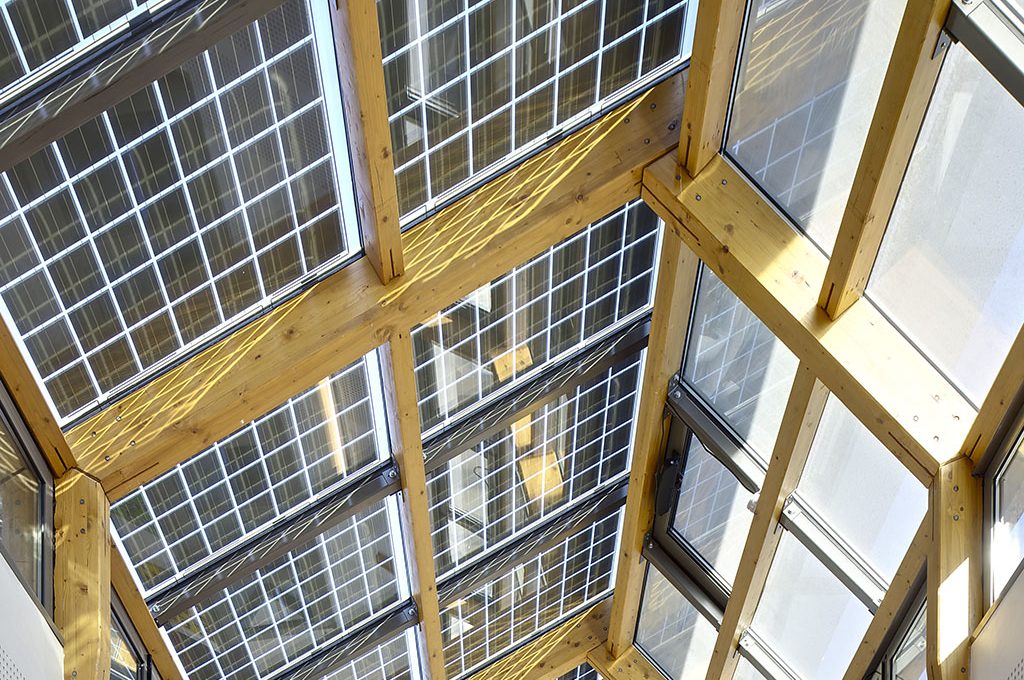 Pensata per un'ottima integrazione architettonica, la vetrata con celle fotovoltaiche è già dotata di cablaggi e di scatola di connessione (ai bordi dei moduli) per collegarsi all’impianto che autoproduce energia elettrica gratuita.