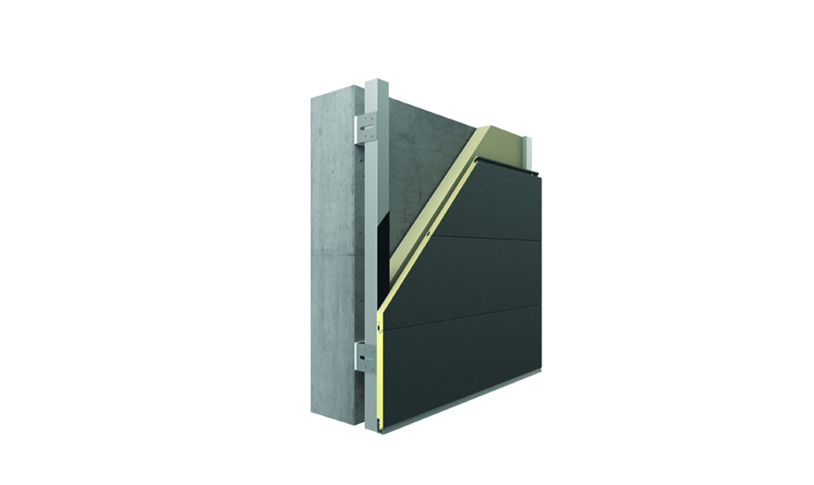 per facciate Easy Wand. Riveste le pareti esterne con un cappotto termoisolante e crea una camera d’aria ventilata tra i pannelli isolanti e le lastre di finitura [Alubel, su progetto].