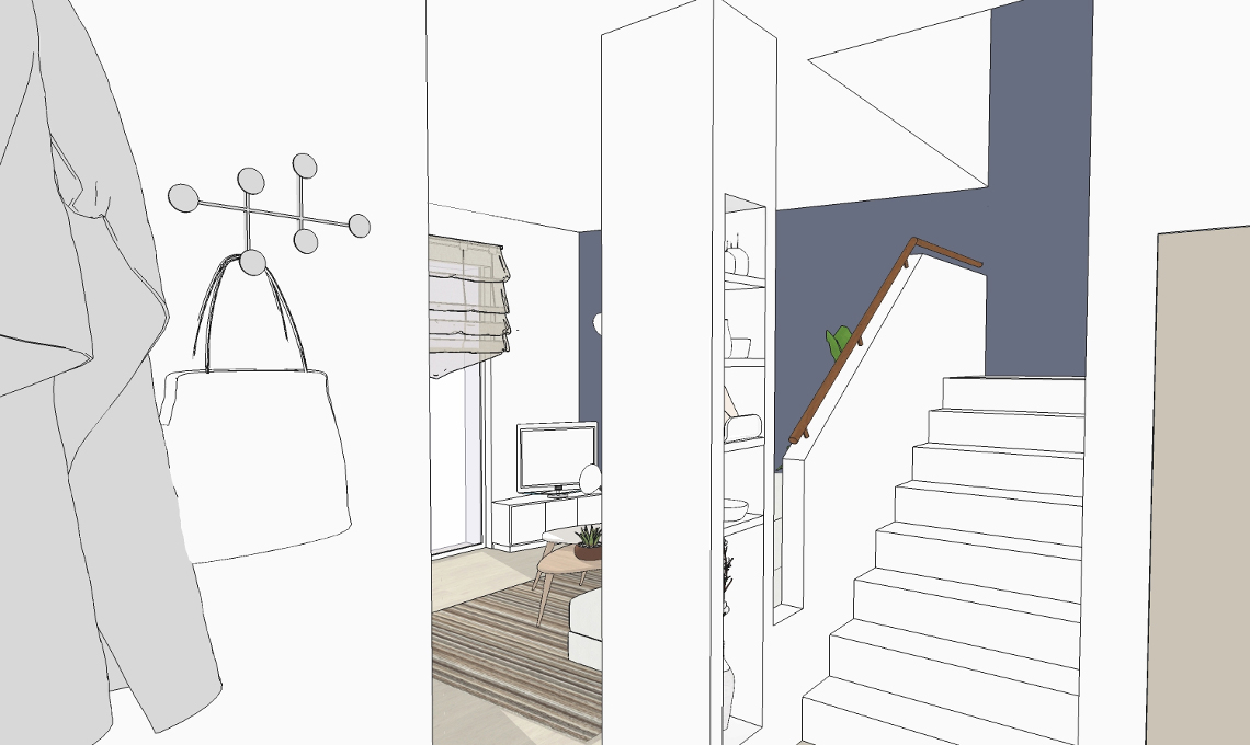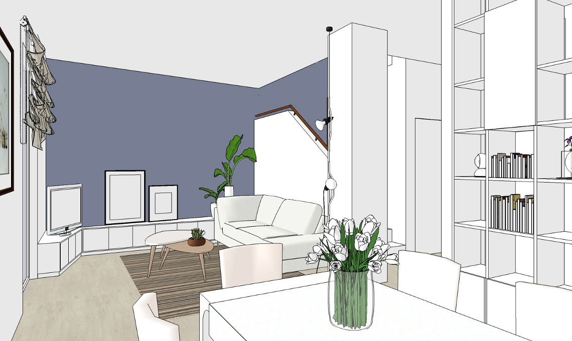 I proprietari, una giovane coppia con due figli, hanno acquistato questa villa su tre piani mentre l’edificio era ancora in costruzione e le tramezzature interne non erano state ancora realizzate. La suddivisione degli ambienti proposta dal costruttore non soddisfaceva però le loro esigenze e volevano avere una soluzione alternativa che tenesse conto anche degli arredi già in loro possesso. Ecco la soluzione proposta dall'architetto CF style Marzia Filatrella.