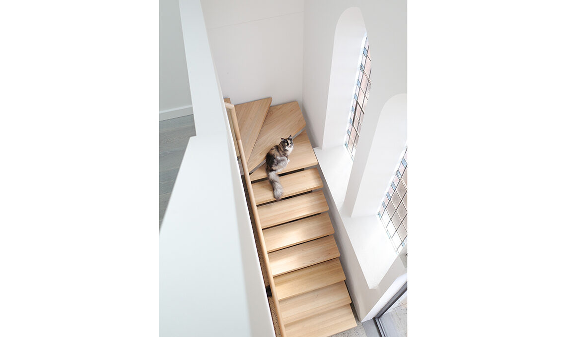 In questi casi si prediligono le scale con una struttura il più possibile leggera, essenziale e permeabile alla vista, in modo da non coprire la parete e darle il ruolo da protagonista che merita.