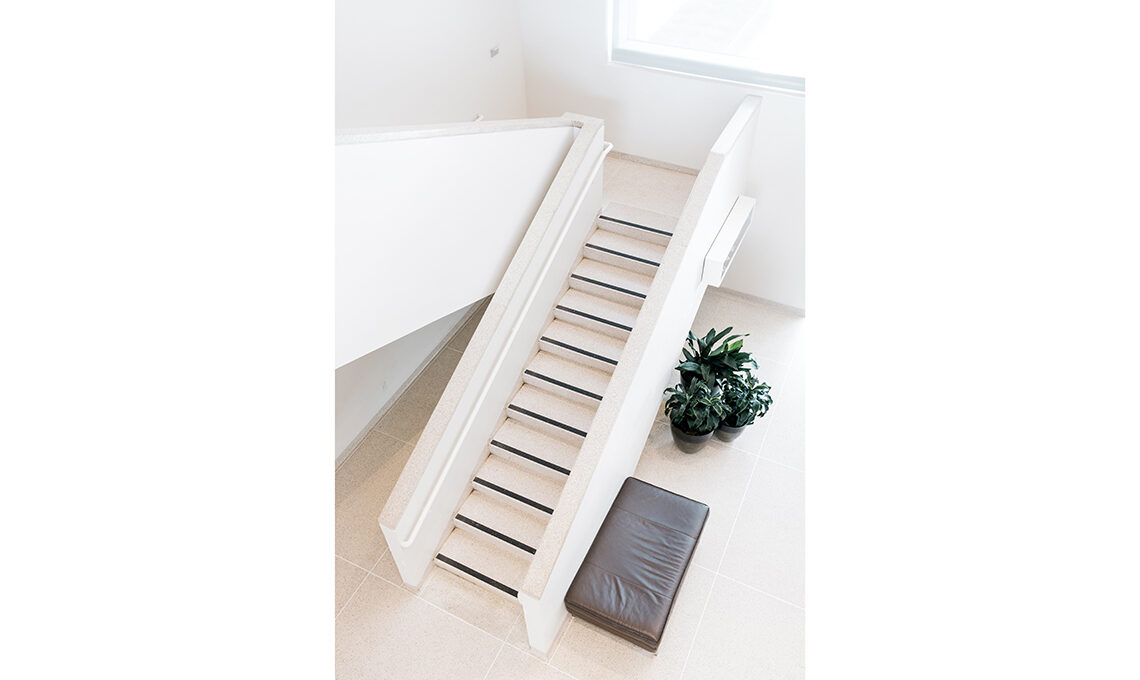 Se invece la rampa è posizionata in una parte buia della casa abbastanza defilata utilizza un rivestimento monocolore sui toni chiari, in modo da renderla più luminosa e dare più respiro alla rampa, magari si può arricchire la parete con dei quadri o dell’illuminazione studiata ad hoc.