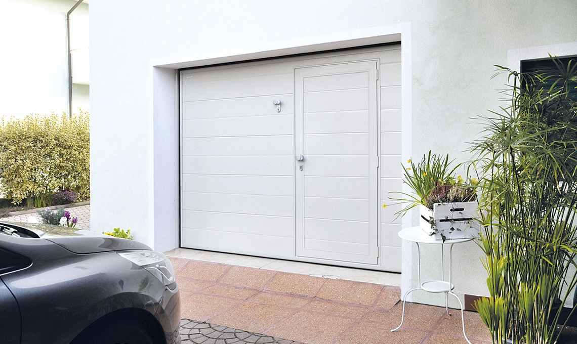 Il portone da box MyFusionè reso inviolabile dal sistema di sicurezza E-Lock e dall’automazione ISY. Integra la porta pedonale Planus dotata di serratura a 3 punti di chiusura [Ballan, cm 300x230h prezzo su progetto].