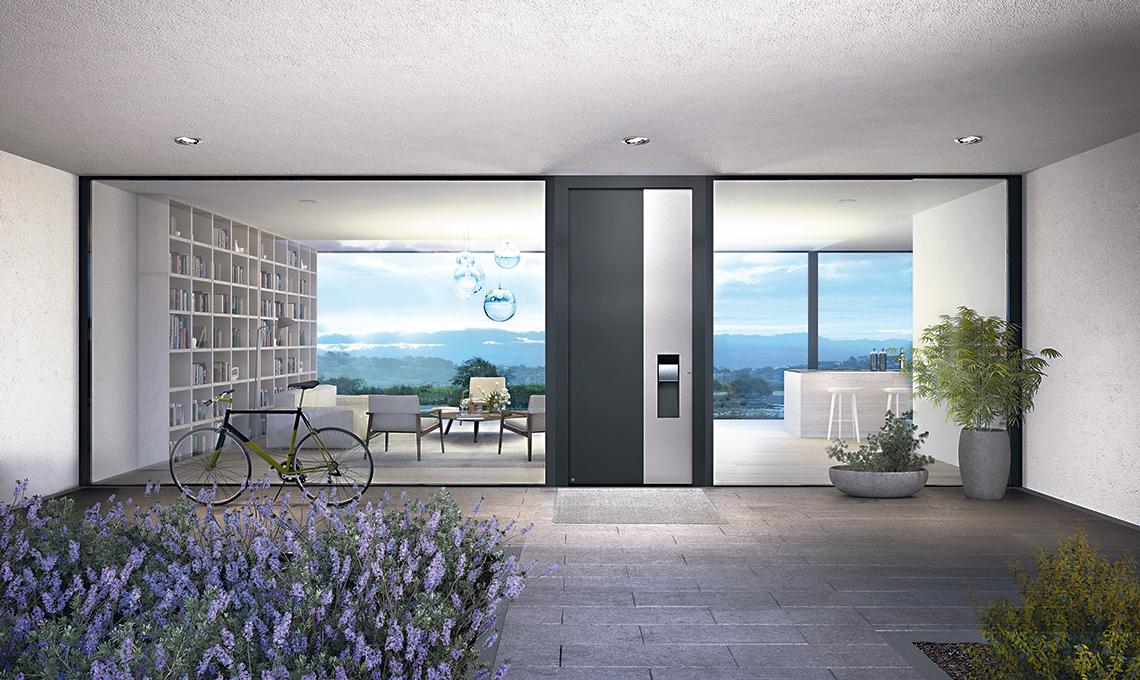 Isola anche termicamente laporta ThermoSafe, in classe antieffrazione rc3, che può essere abbinata a vetri stratificati antischegge [Hörmann, cm 125x225h da € 2.179].