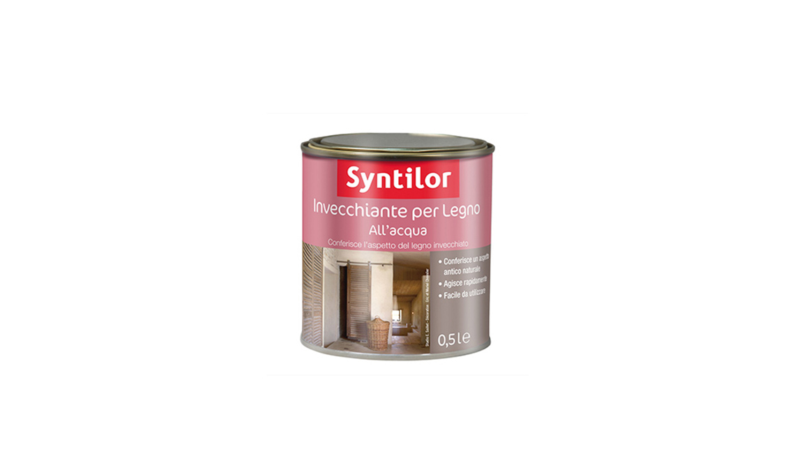 4. STENDI due mani della finitura Invecchiante di Syntilor per legno all’acqua con il pennello piatto da 2 cm, ricreando un’artistica patina antica.
