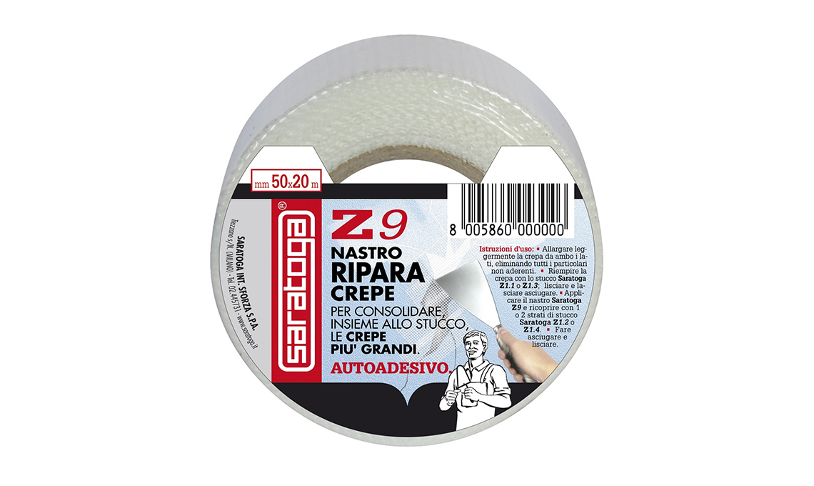 Per l’intervento fai-da-te servono due prodotti, il Nastro ripara crepe Z9, autoadesivo e consolidante anche per crepe più grandi [€ 10,50]. Di [Saratoga].