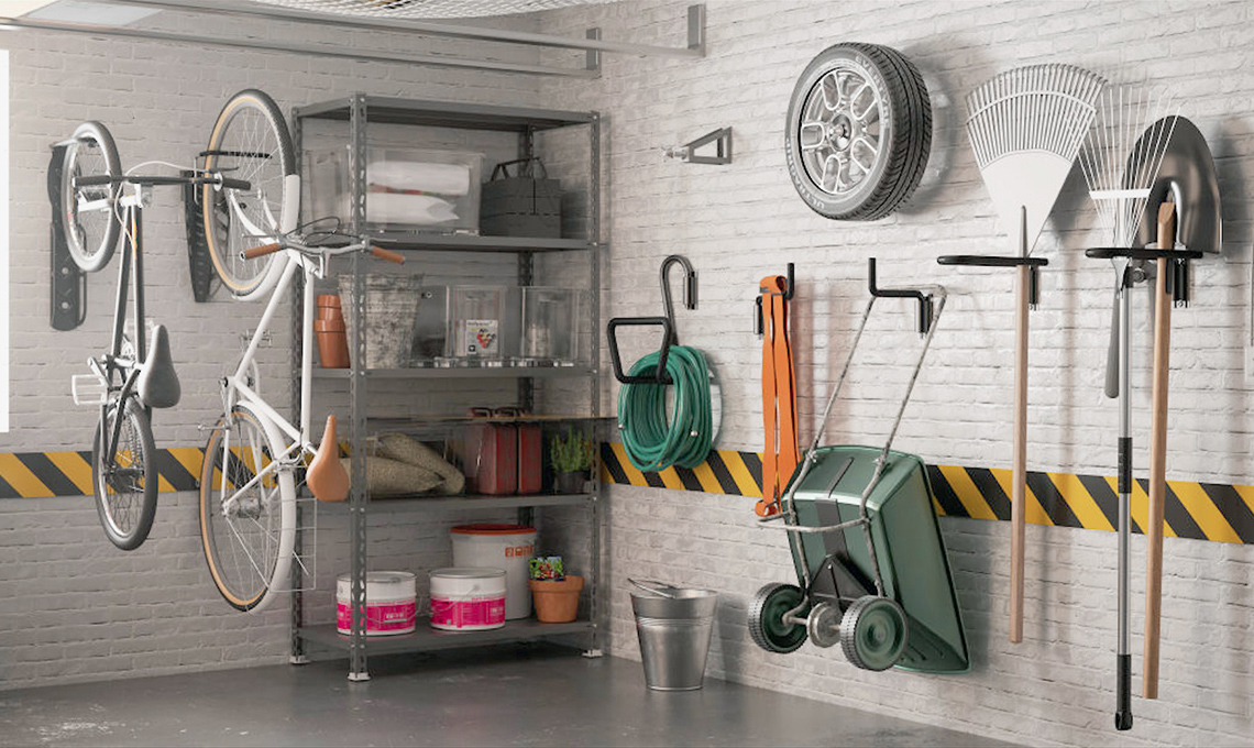 Se vuoi fare ordine nel garage, procurati ganci, mensole e tutto l'occorrente per il box. Basta un gancio (giusto) per ogni cosa: dal supporto per la bici, alla serie Dock and Lock per gli attrezzi, fino al supporto per ruote [tutto di Leroy Merlin].