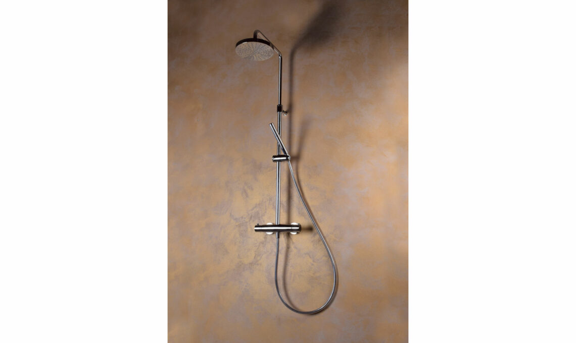 Esterno muro: per rinnovare la doccia in modo easy, scegli un’asta con miscelatore termostatico (tiene fissa la temperatura e non ti scotti). Esterno: si montano i raccordi universali sugli attacchi esistenti!