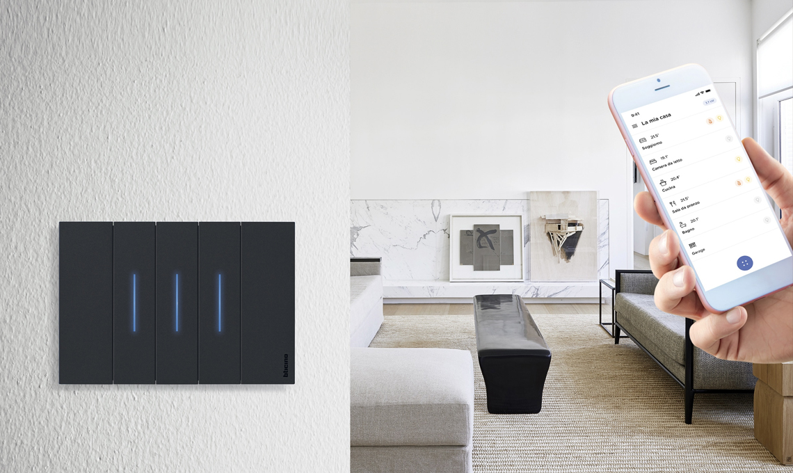 Questi nuovi comandi e prese smart necessitano però di una connessione Internet e di un gateway, il dispositivo di interfaccia radio Bluetooth/Wi-Fi che rappresenta il cuore dell’impianto smart. È il ponte di comunicazione tra questi dispositivi e il nostro smartphone o gli apparecchi compatibili con gli assistenti vocali (Amazon Alexa, Google Assistant e Siri) che abbiamo in casa: in questo modo potremo gestire l’impianto connesso da remoto tramite un’app, utilizzando la voce o, ovviamente, con il solito classico tocco della mano.