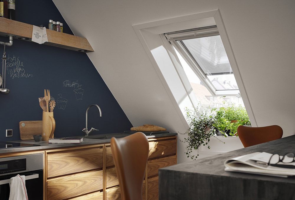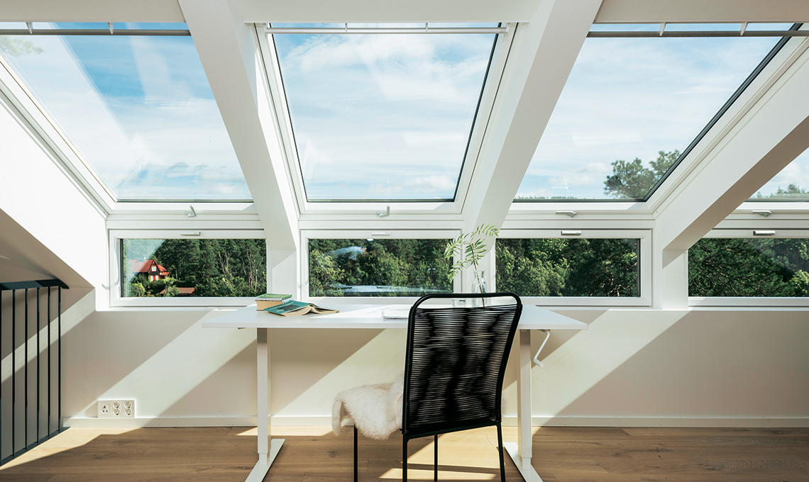 Maxi-visuale e luce extra. Progettati per essere abbinati a finestre per tetti di pari larghezza, gli elementi verticali VFE con maniglia regalano alla mansarda una superficie vetrata in più, che aumenta l’apporto di luce, amplia la visuale e favorisce il ricambio d’aria. Nella gallery, finestre per tetti GPU con doppia apertura vasistas/bilico, Ci sono moduli VFE che possono arrivare anche al pavimento [Velux].