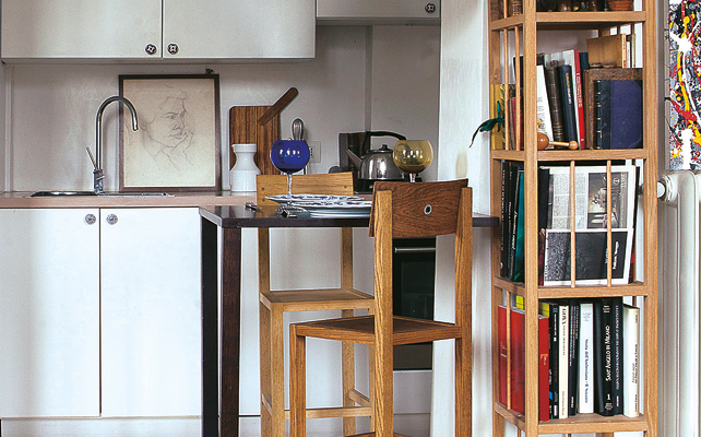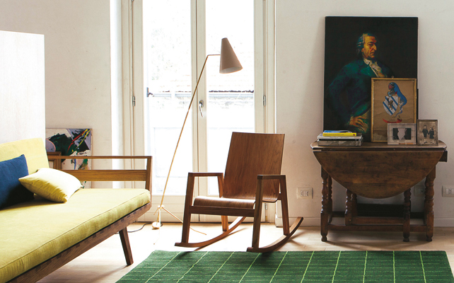 Il grande monolocale (94 mq) è stato ottenuto sostituendo i tavolati di un appartamento con paretine autoportanti in legno che delimitano spazi funzionali, non vere e proprie stanze. «È un ambiente unico dove la notte si fonde con il giorno, e la passione per il lavoro con la vita» dice Mario che qui si riunisce con amici e collaboratori o i giovani designer dello Studio Mandalaki e di Uniluna. «Nascono così progetti che sono messaggi culturali e sociali». L’ultimo si chiama PliniOltre: pezzi pensati e prodotti con la collaborazione dei detenuti della Cooperativa Sociale Opera in Fiore. » www.operainfiore.it